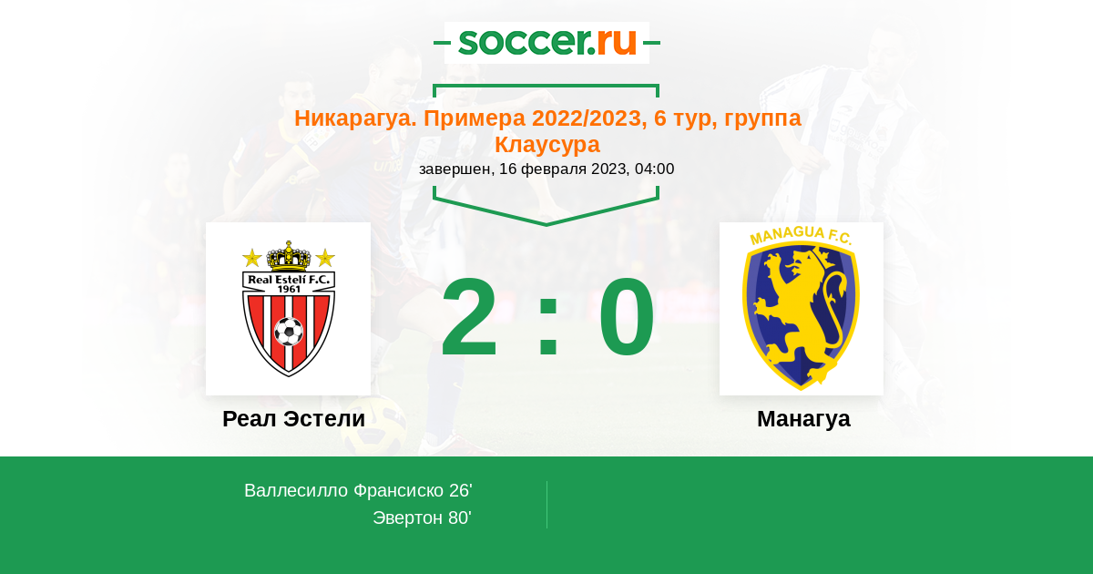 Протокол матча Реал Эстели против Манагуа