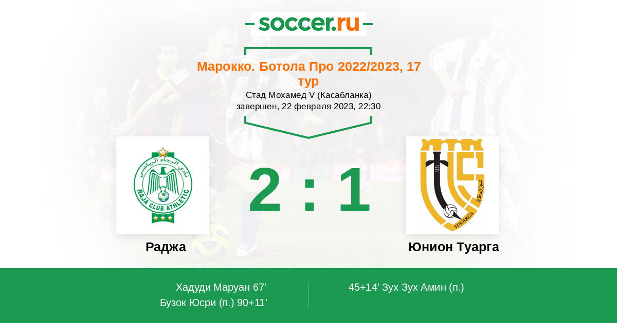 Протокол матча Раджа против Юнион Туарга