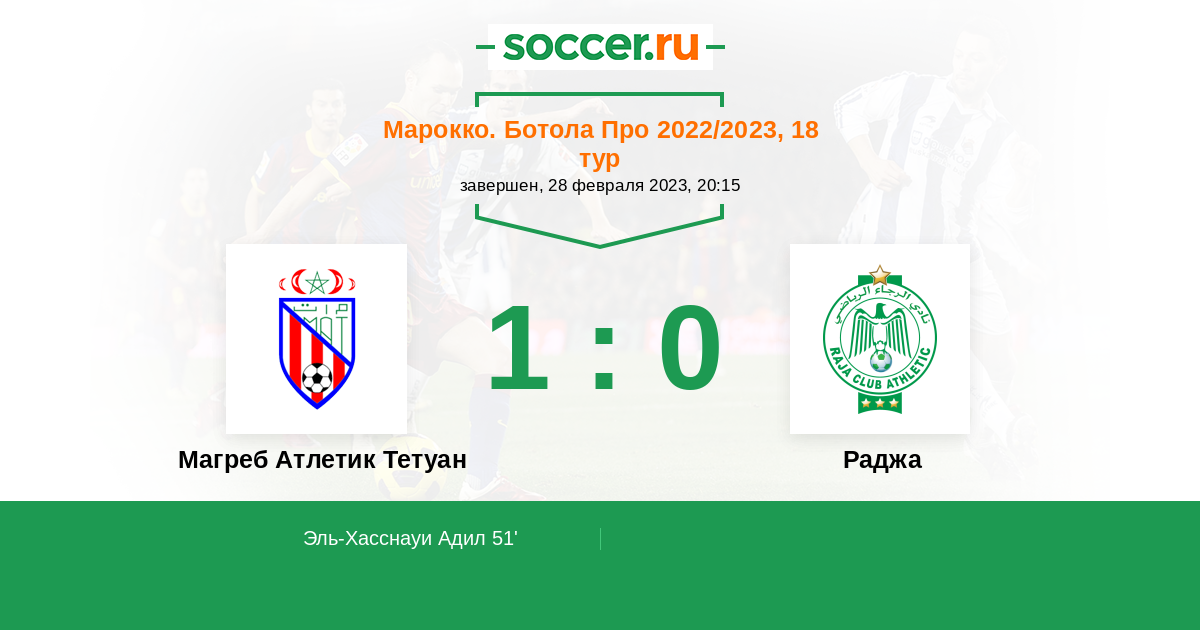 Протокол матча Магреб Атлетик Тетуан против Раджа