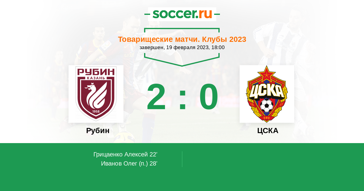 Протокол матча Рубин против ЦСКА