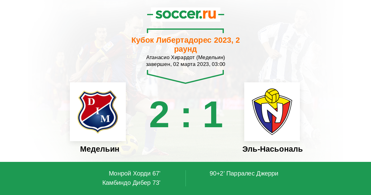 Протокол матча Медельин против Эль-Насьональ