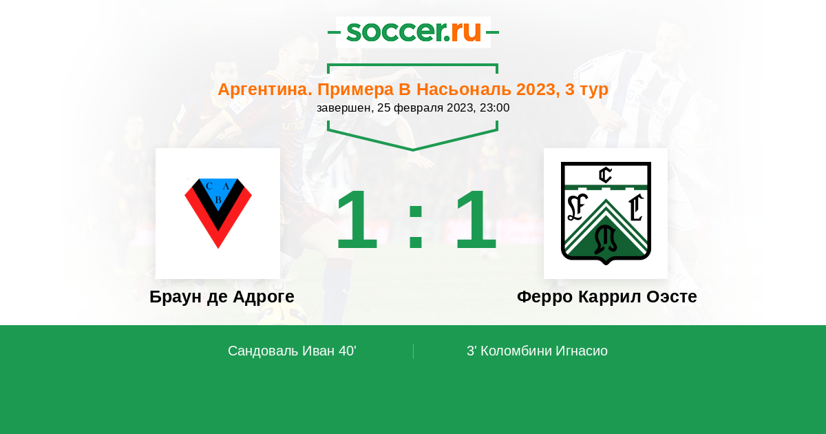 Протокол матча Браун де Адроге против Ферро Каррил Оэсте