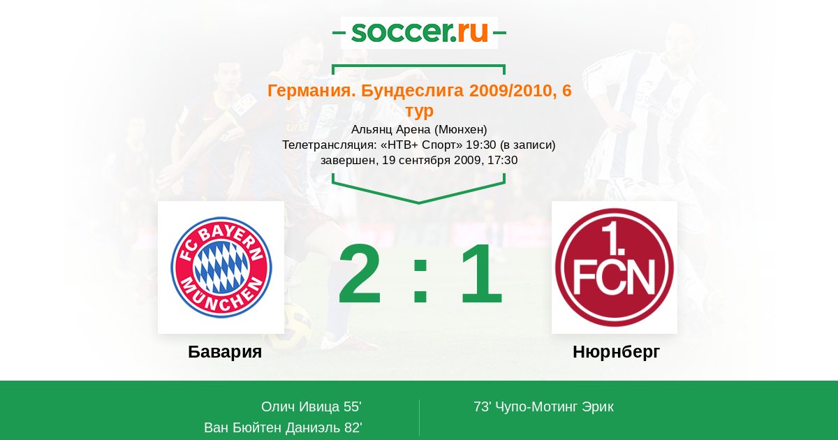 Протокол матча Бавария против Нюрнберг