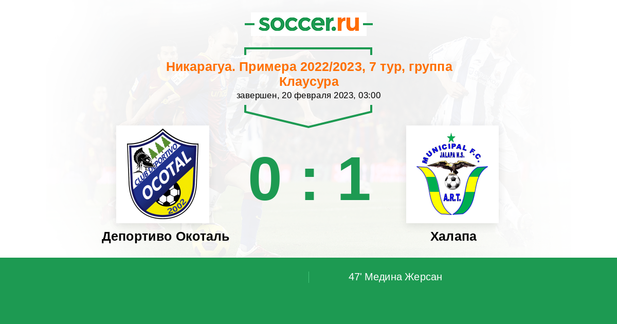 Протокол матча Депортиво Окоталь против Халапа