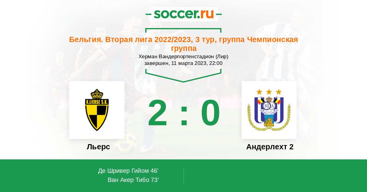 Протокол матча Льерс против Андерлехт 2