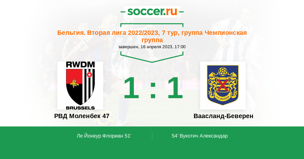 Протокол матча РВД Моленбек 47 против Ваасланд-Беверен