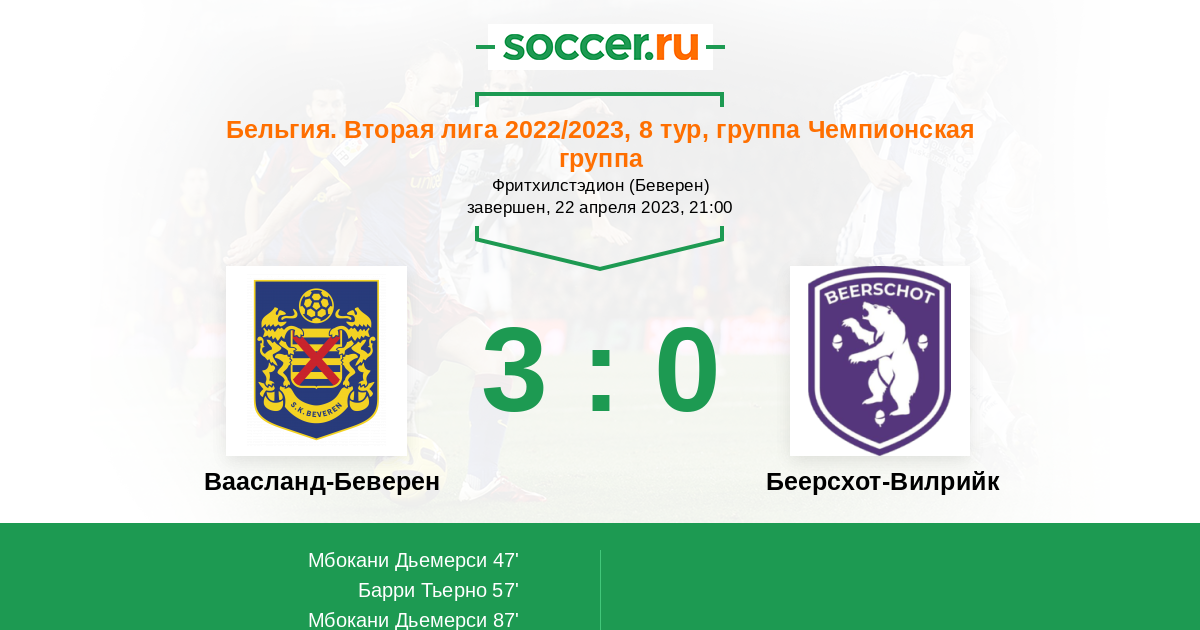 Протокол матча Ваасланд-Беверен против Беерсхот-Вилрийк