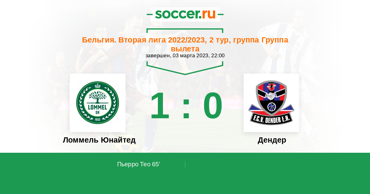 Протокол матча Ломмель Юнайтед против Дендер
