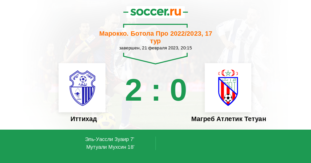 Протокол матча ИР Анже против Магреб Атлетик Тетуан