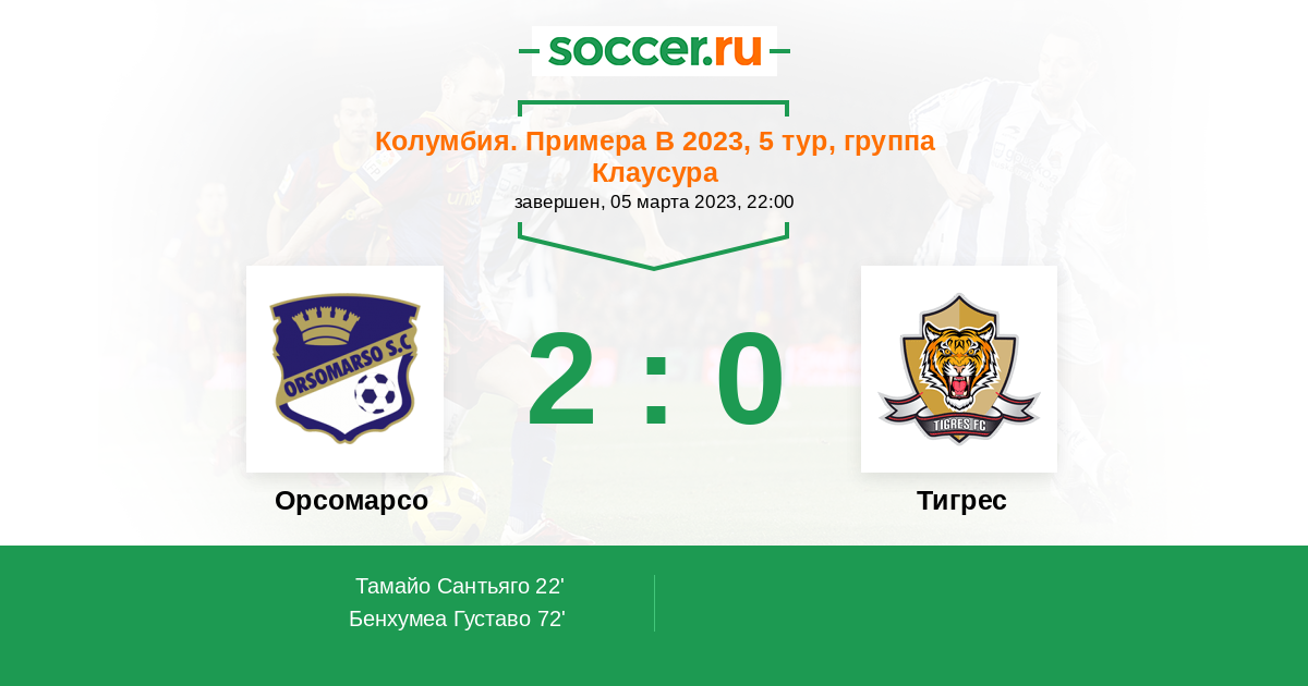 Протокол матча Орсомарсо против Тигрес