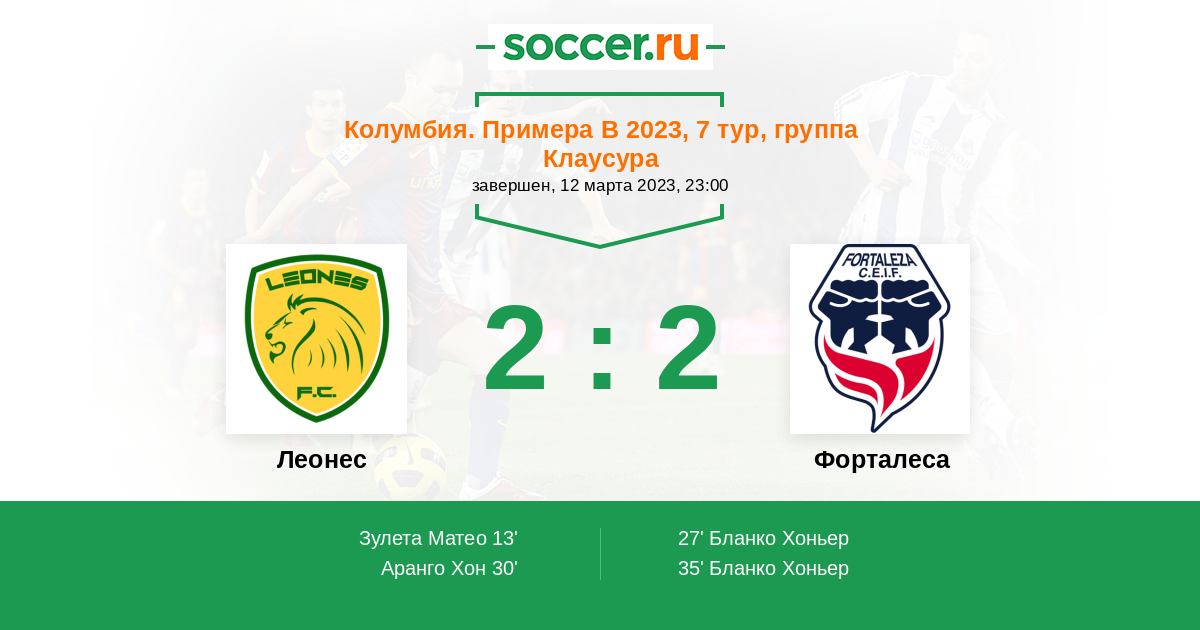 Протокол матча Леонес против Форталеса