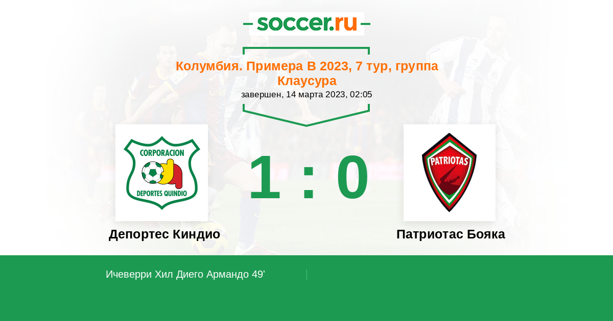 Протокол матча Депортес Киндио против Патриотас Бояка