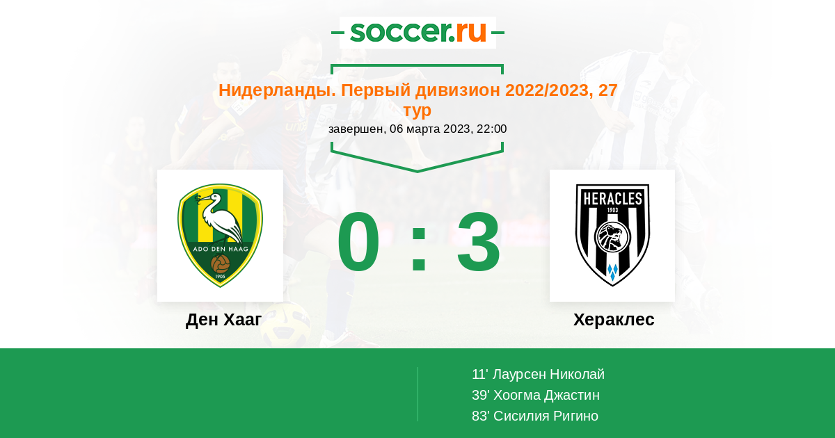 Протокол матча Ден Хааг против Хераклес