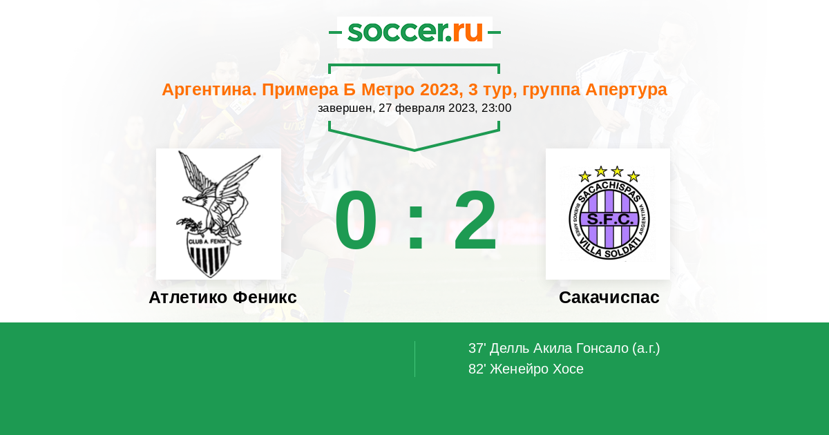 Протокол матча Атлетико Феникс против Сакачиспас