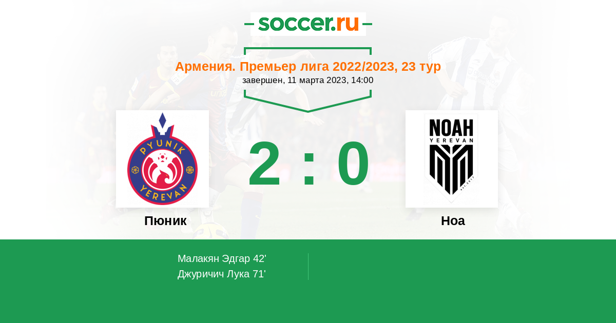 Протокол матча Пюник против Ноа