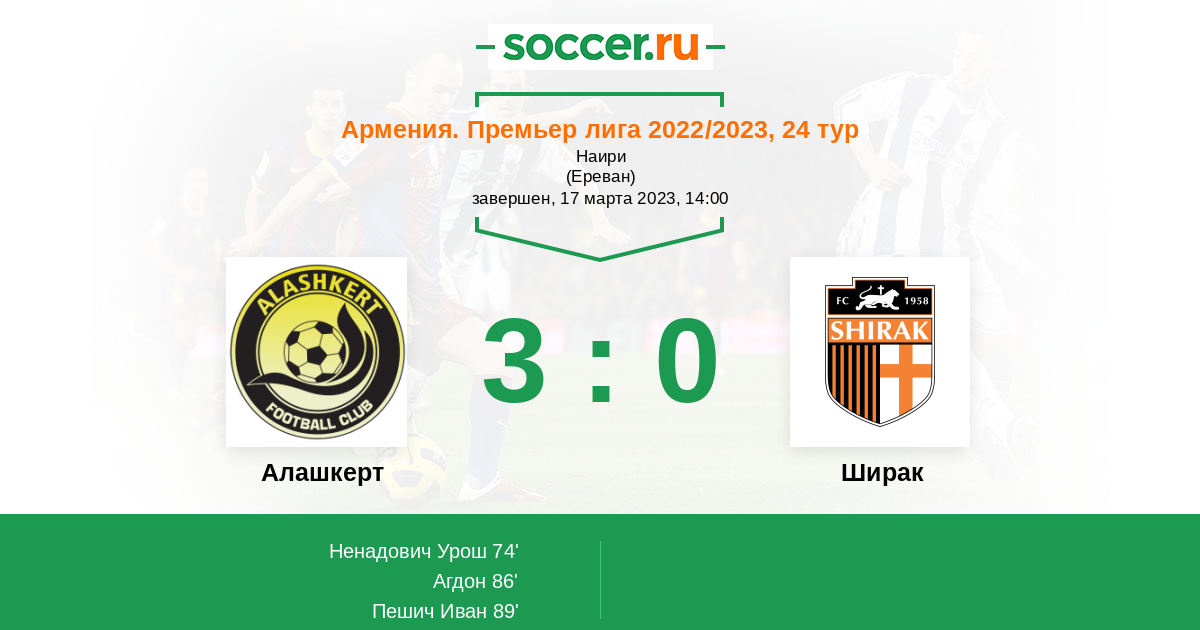 Протокол матча Алашкерт против Ширак