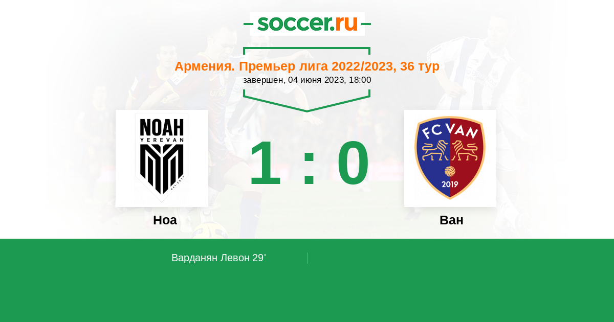 Протокол матча Ноа против Ван