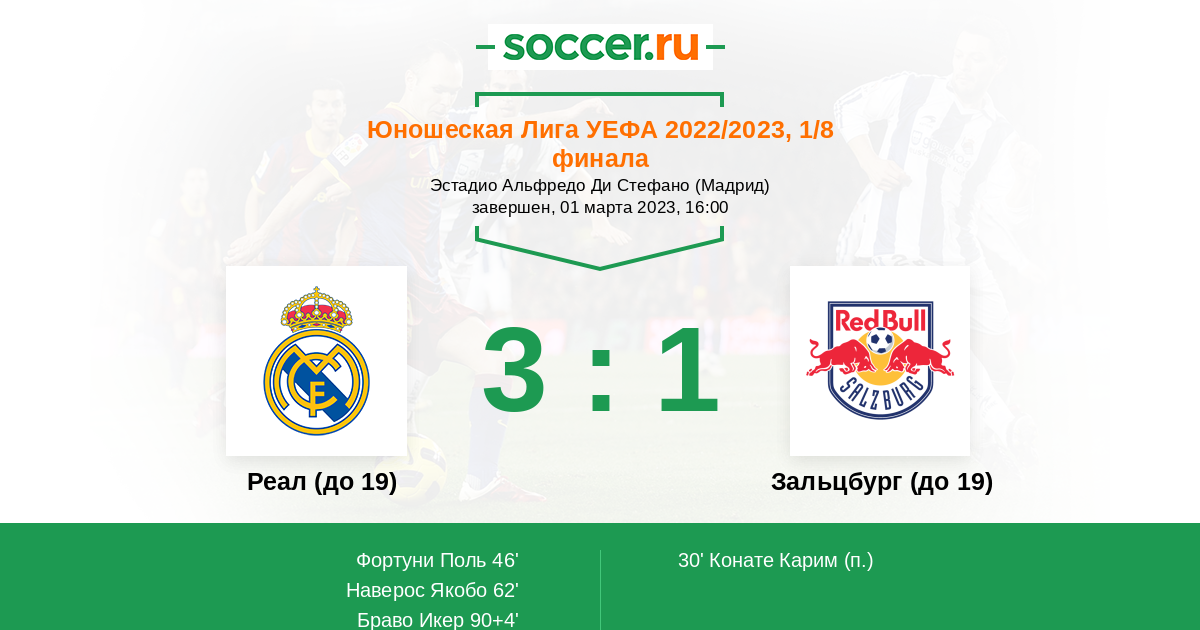 Протокол матча Реал (до 19) против Зальцбург (до 19)