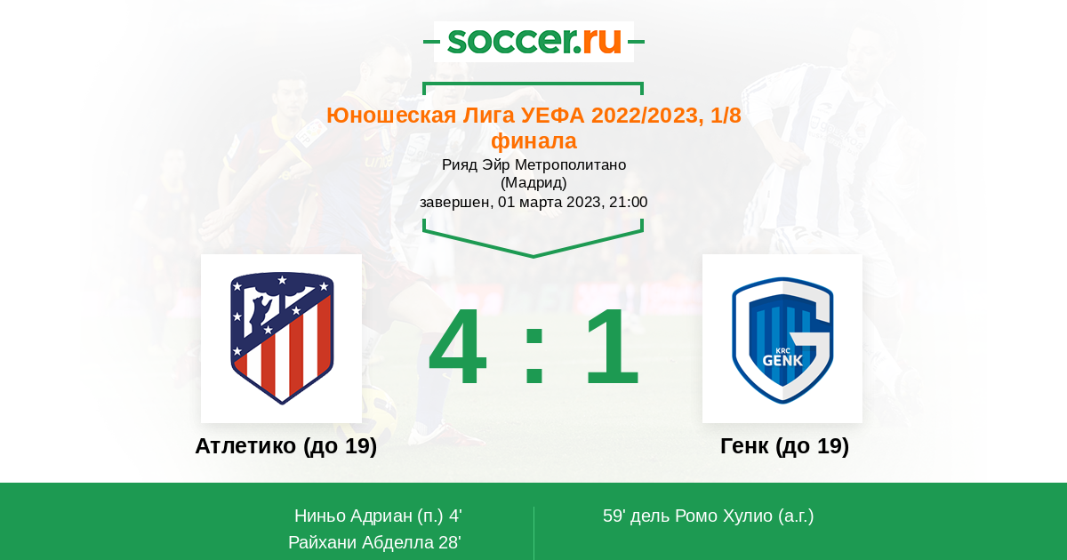 Протокол матча Атлетико (до 19) против Генк (до 19)