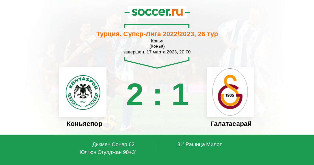 Протокол матча Коньяспор против Галатасарай