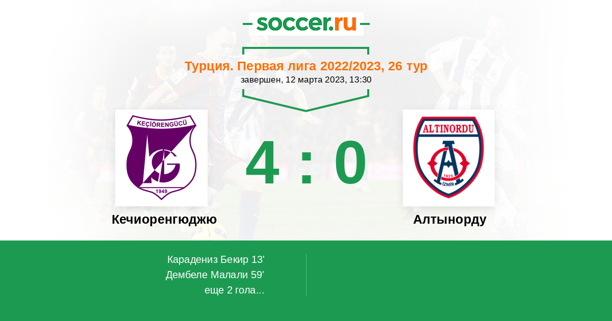 Протокол матча Кечиоренгюджю против Алтынорду