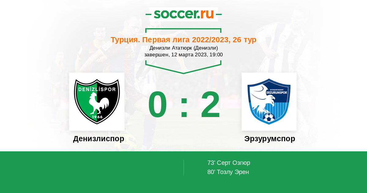 Протокол матча Денизлиспор против Эрзурумспор