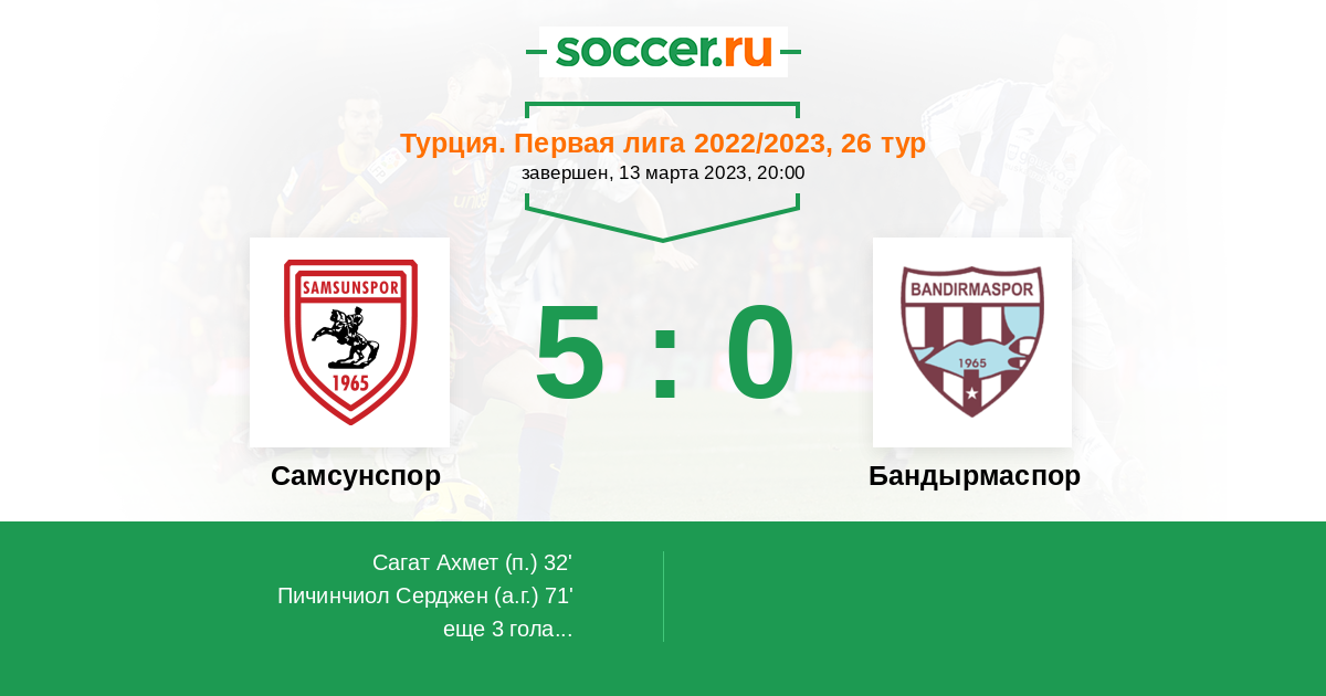 Протокол матча Самсунспор против Бандырмаспор