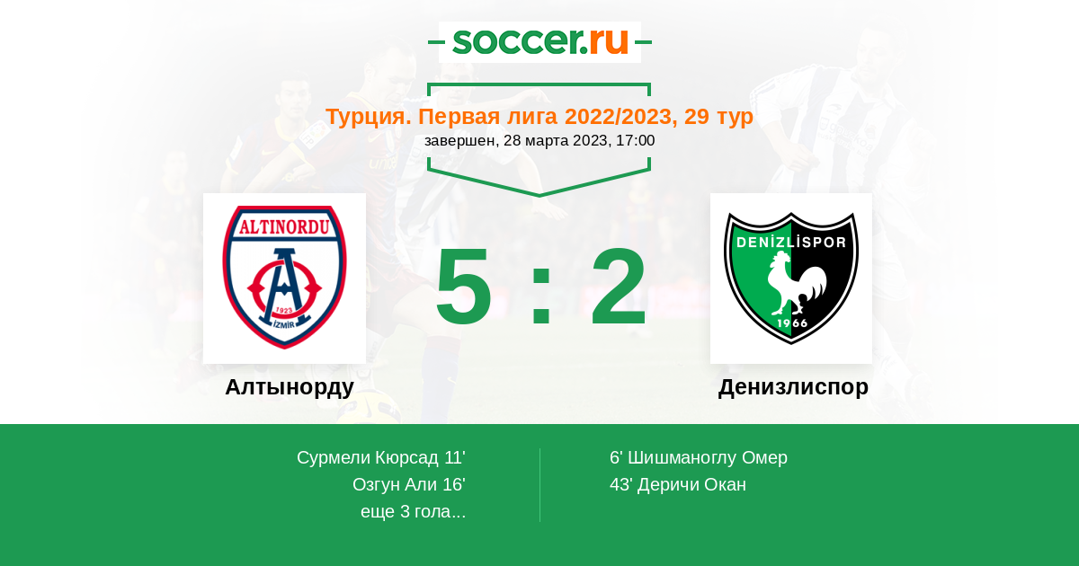 Протокол матча Алтынорду против Денизлиспор