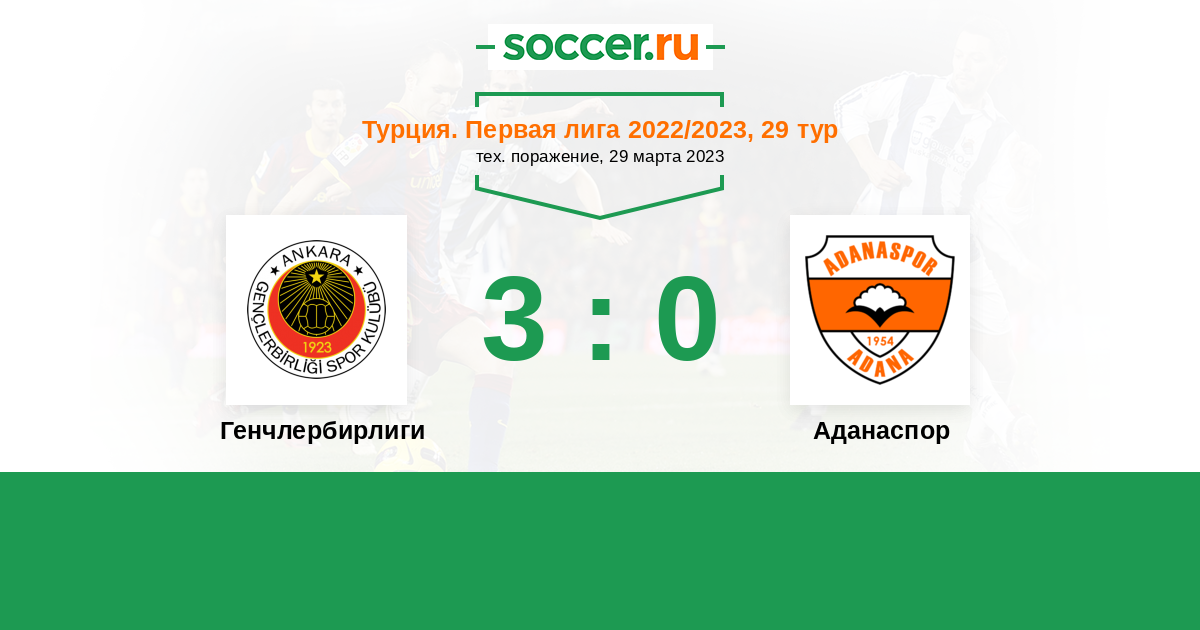 Турция. Первая лига 10.11.2023 Аданаспор Логотип футбольный клуб Аданаспор 0:2 Логотип футбольный клуб Генчлербирлиги (Анкара) Генчлербирлиги