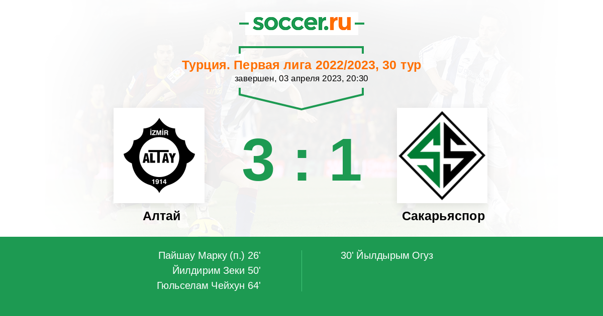 30' (1:1) Йылдырым Огуз (70) (Сулейман Бурак (10))