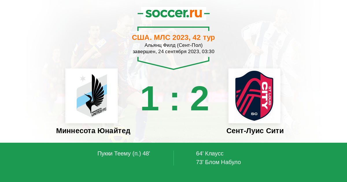 Протокол матча Миннесота Юнайтед против Сент-Луис Сити