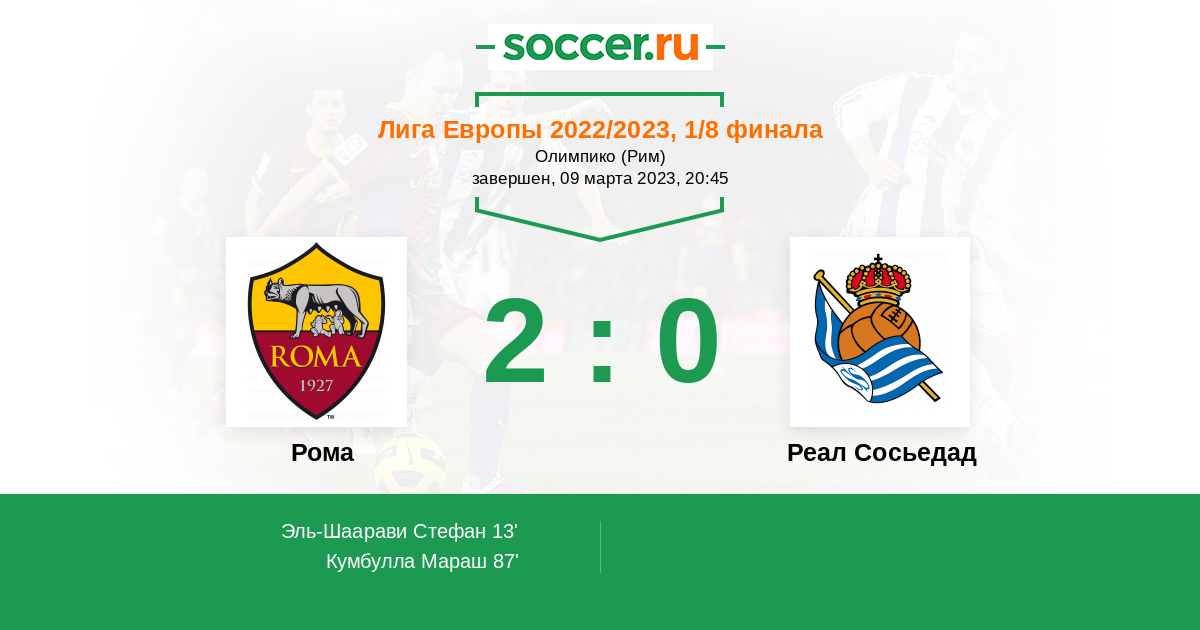 1) Сложно рассчитывать тут на гостей, когда Рома играет дома, когда за 10 матчей команда пропускает всего два гола, и то в мутном матче против Кремонезе. Да и накануне Ювентус обыграли. 2) Правда Реал Сосьедад может забить свой гол, в этом сезоне у команды удаются выездные матчи в целом, хотя именно сейчас сложный период, - ещё + для Ромы.