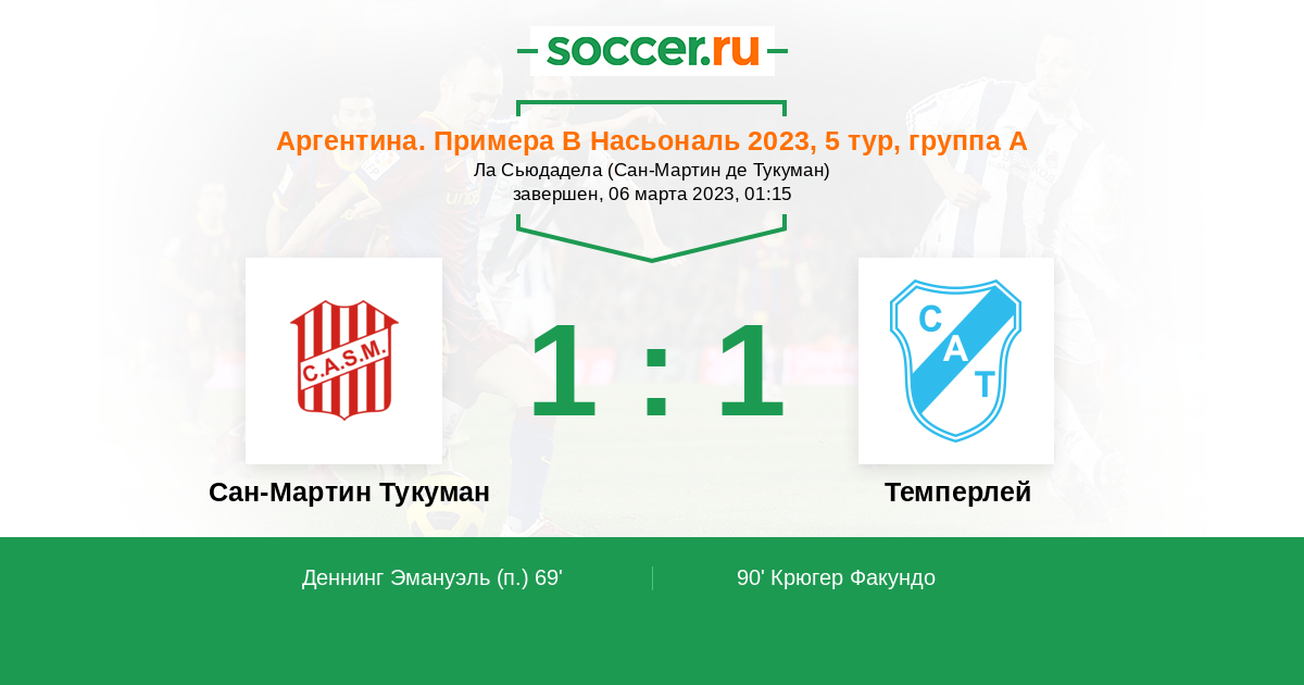 Протокол матча Сан-Мартин Тукуман против Темперлей