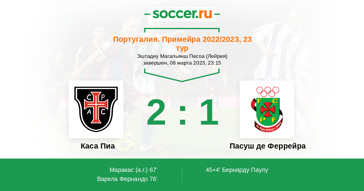 Протокол матча Каса Пиа против Пасуш де Феррейра