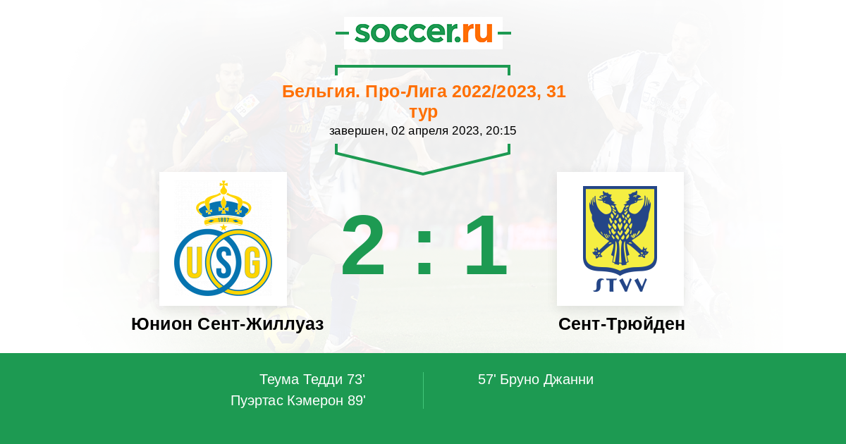 Протокол матча Юнион Сент-Жиллуаз против Сент-Трюйден