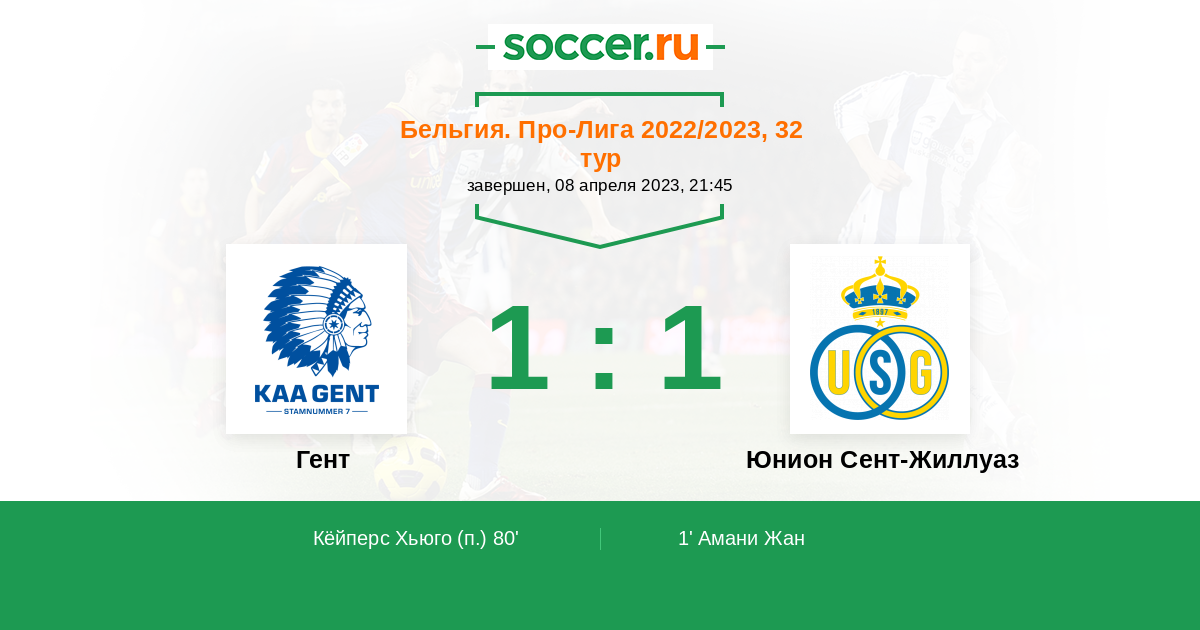 Протокол матча Гент против Юнион Сент-Жиллуаз