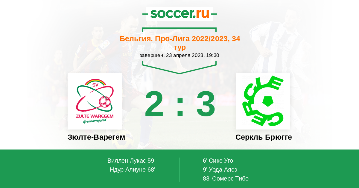 Протокол матча Зюлте-Варегем против Серкль Брюгге