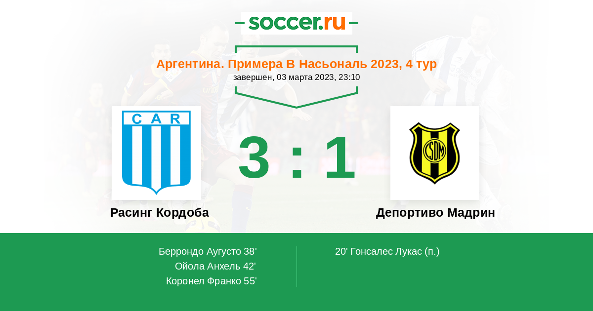 Протокол матча Расинг Кордоба против Депортиво Мадрин