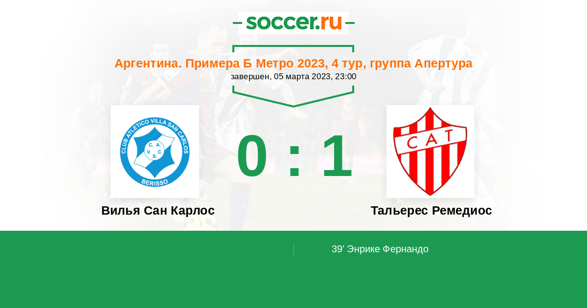 Протокол матча Вилья Сан Карлос против Тальерес Ремедиос