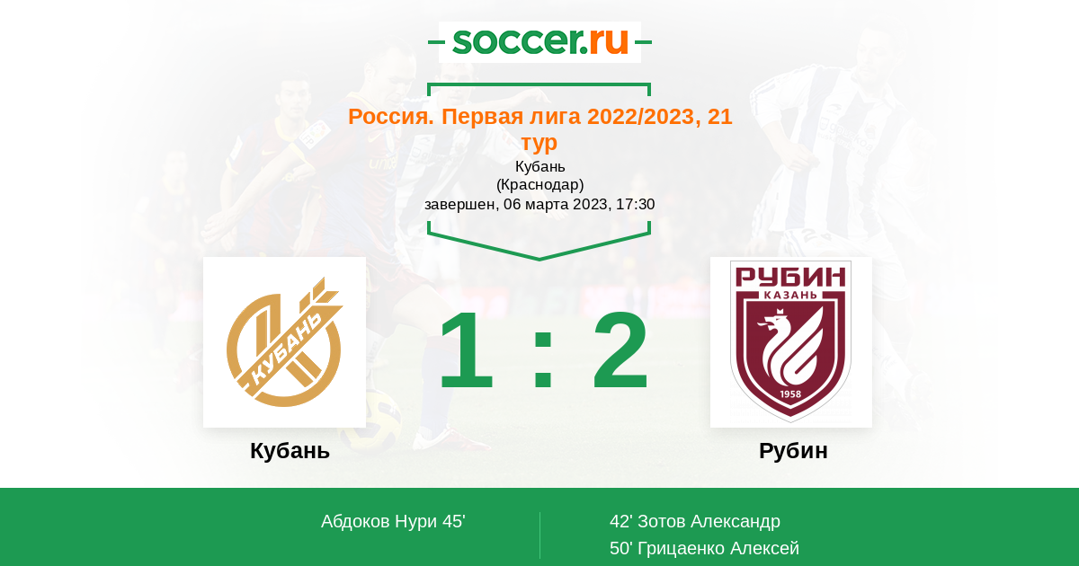 Протокол матча Кубань против Рубин