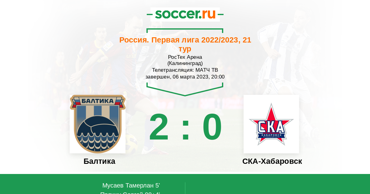 Я думаю что в этом противостоянии более чем явным фаворитом на победу является команда хозяев поля Балтика . При всём уважении к команде гостей СКА Хабаровск , команда сейчас находится не в том состоянии чтобы создать конкуренцию Балтике .