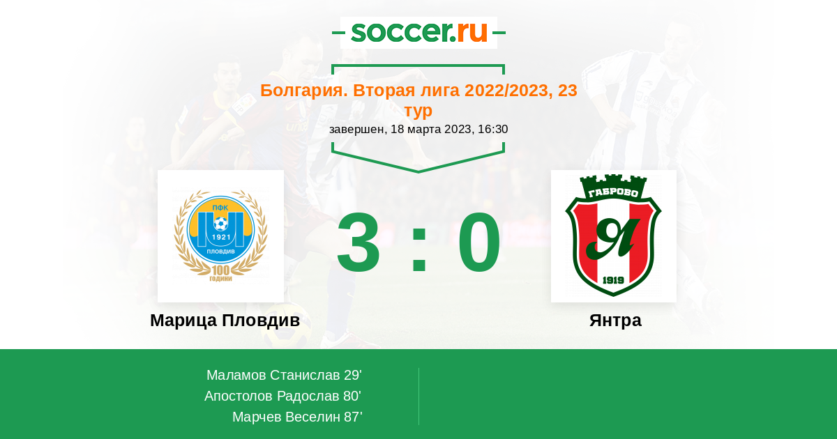Протокол матча Марица Пловдив против Янтра