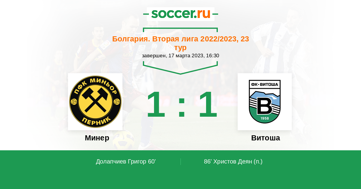 Протокол матча Минер против Витоша