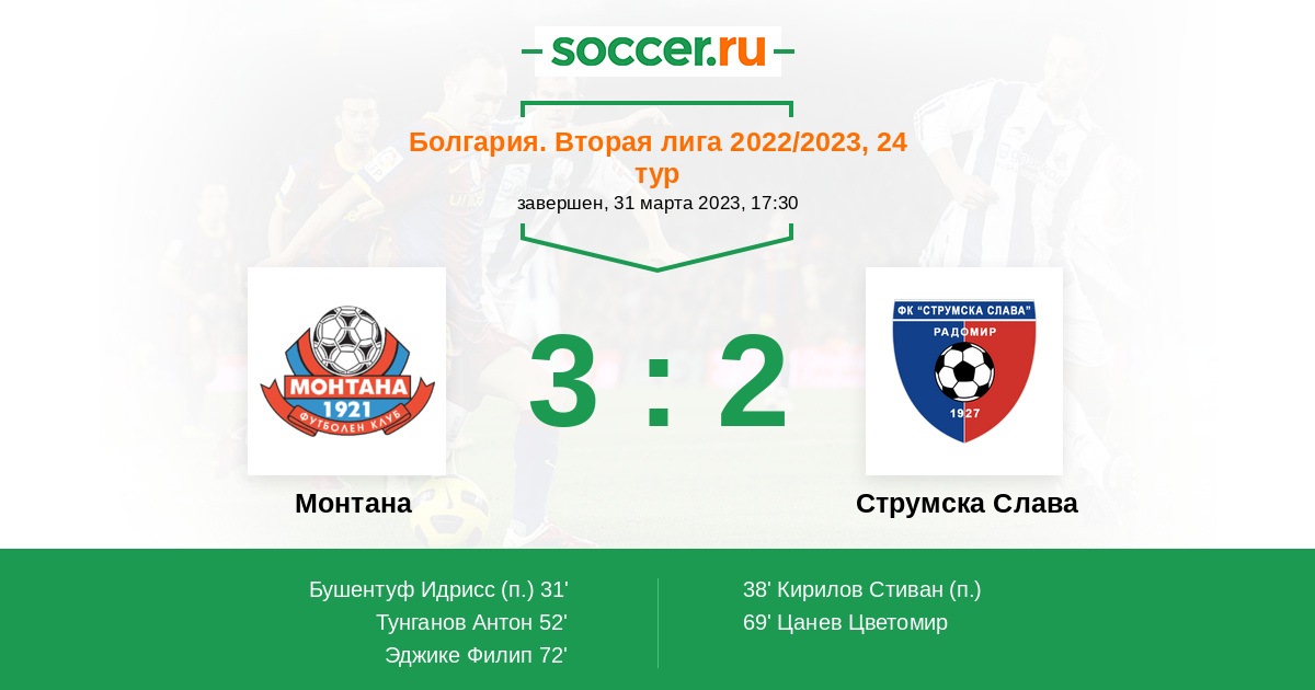Протокол матча Монтана против Струмска Слава