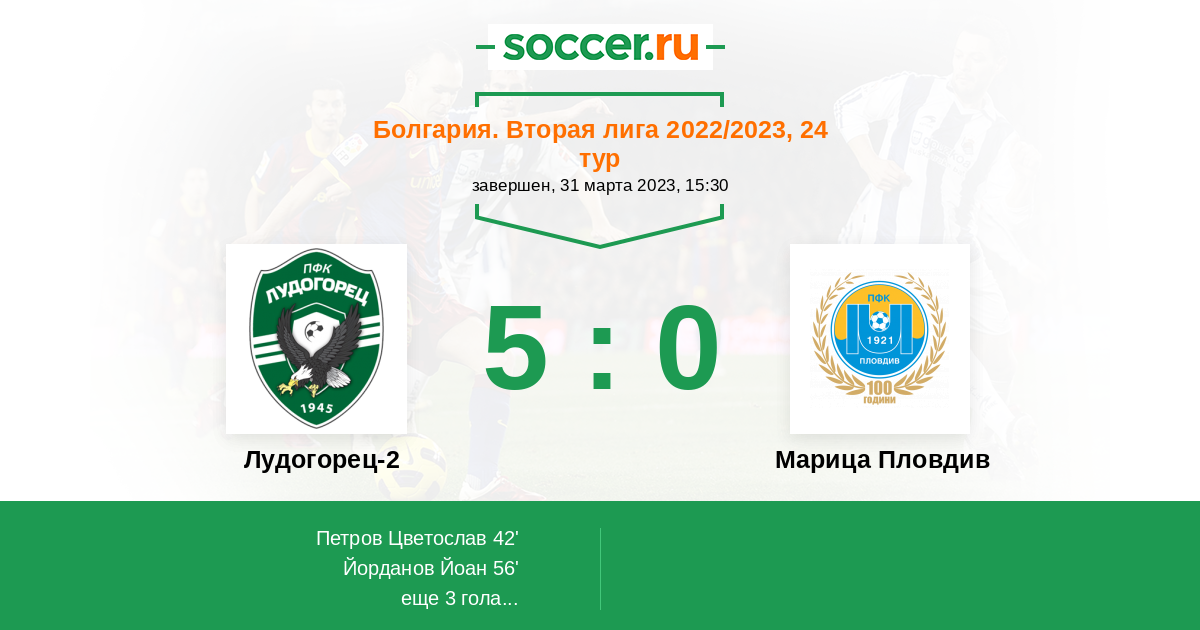 Протокол матча Лудогорец-2 против Марица Пловдив