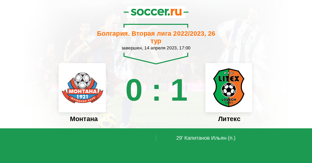 Протокол матча Монтана против Литекс