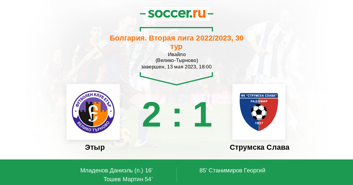 Протокол матча Этыр против Струмска Слава