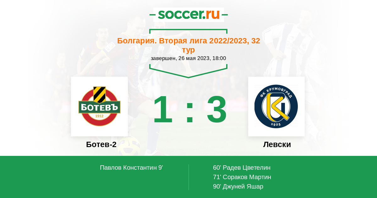 Протокол матча Ботев-2 против Левски