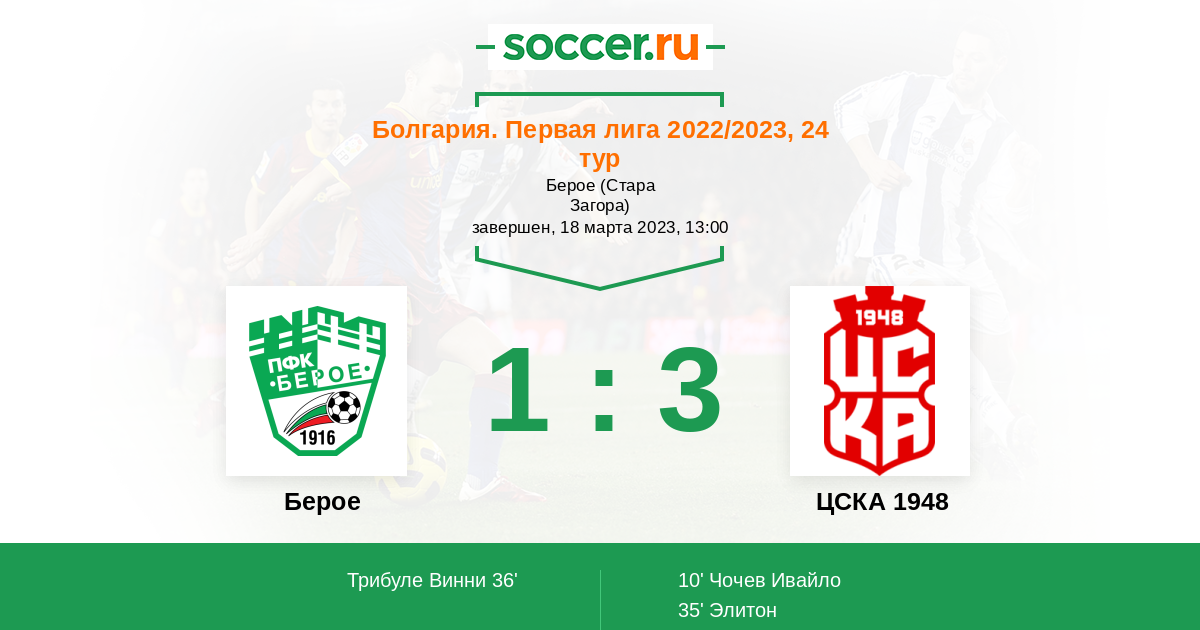 Протокол матча Берое против ЦСКА 1948