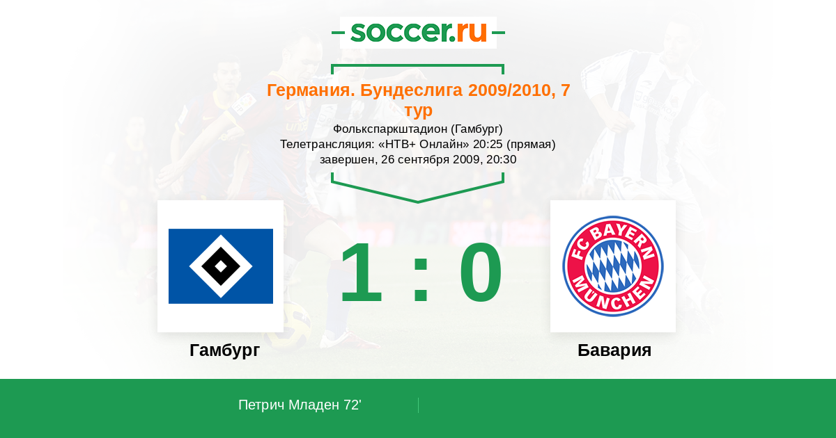 Протокол матча Гамбург против Бавария